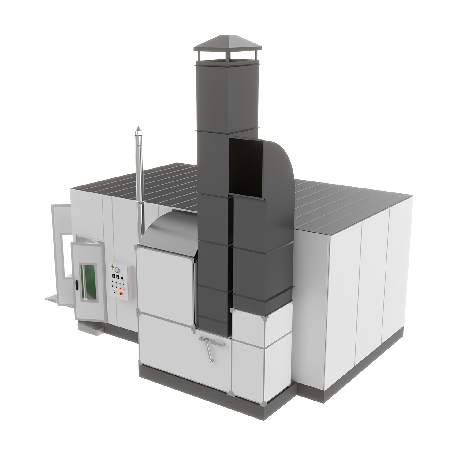 Используется для сушки лакокрасочных покрытий и организации технологических процессов окраски. Боковые стены состоят из сэндвич-панелей (негорючий пенополистирол толщиной 53 мм) и являются теплоизоляционными. Визуальный контроль позволяют осуществить 3-х створчатые ворота со встроенными смотровыми окнами. Можно установить дополнительный комплект ворот с целью организации сквозного проезда. Установить приточно-вытяжную группу с любой стороны в процессе монтажа позволяет унифицированная конструкция.